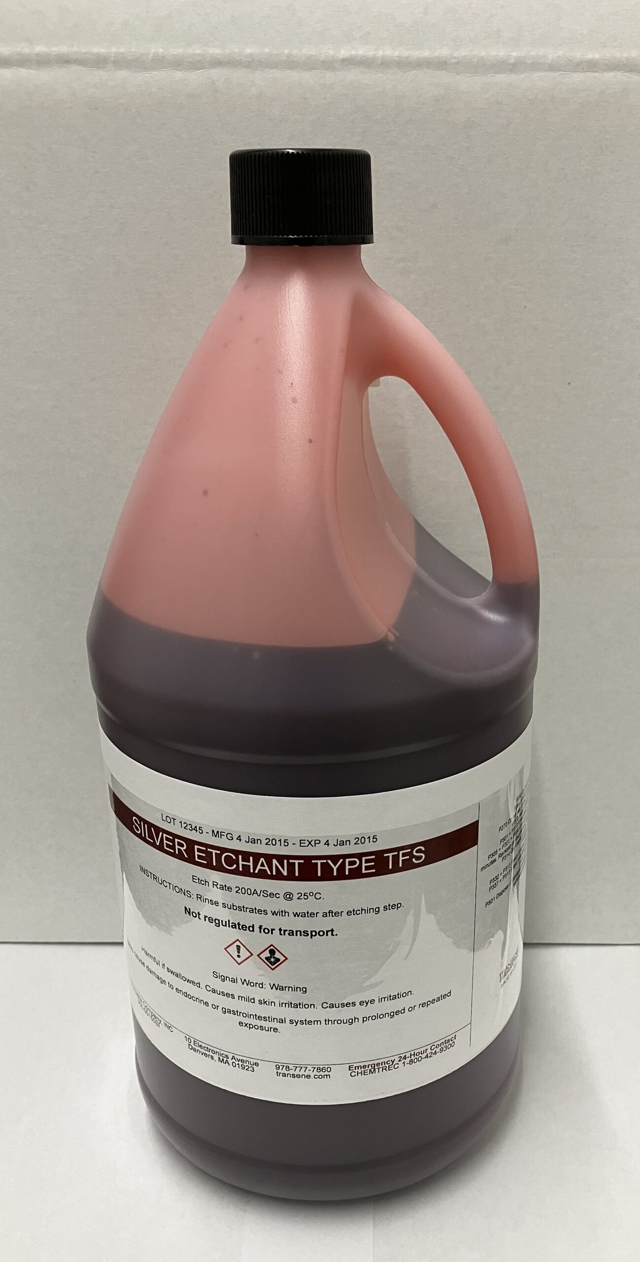 - Silver Etchant TFS is available in glass or plastic packaging depending on shipment method.